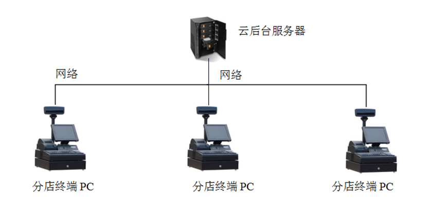 互聯(lián)網(wǎng):總店P(guān)C與分店P(guān)C均可以登陸互聯(lián)網(wǎng)。