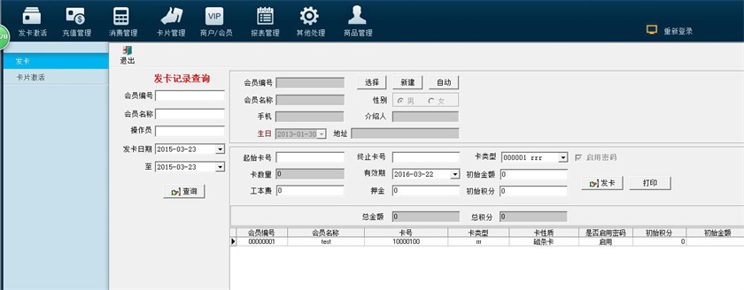 軟件簡介:本軟件適合分店較少、網(wǎng)絡(luò)情況較好的企業(yè),發(fā)行含有儲值、積分功能的會員卡。總店運(yùn)行會員管理后臺軟件,分店收銀PC機(jī)聯(lián)接讀卡器,作為刷卡消費(fèi)終端,分店P(guān)C機(jī)通過網(wǎng)絡(luò)與后臺軟件通信,完成各類會員卡交易。適用磁卡、M1卡、CPU卡等。