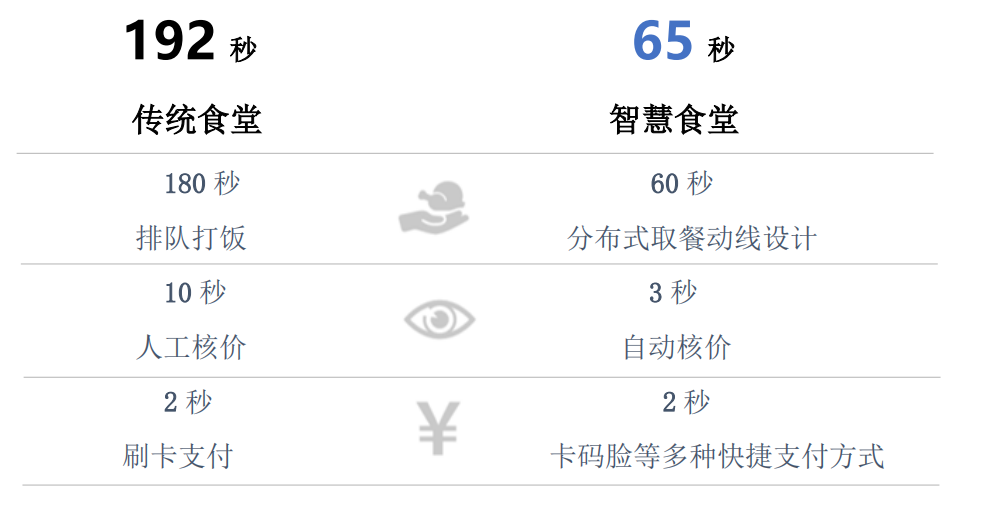 智慧食堂,讓線下選餐和支付更加快捷,實(shí)現(xiàn)員工“進(jìn)入食堂、支付就餐”在 1 分鐘左右完成,讓員工更多時間享受美食: