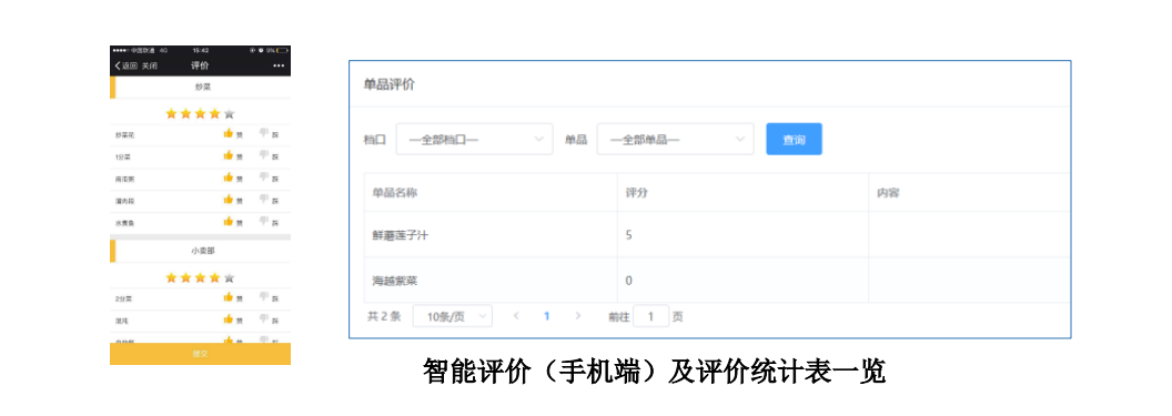 智能評價,使員工就餐后可在網(wǎng)上直接評價菜品質(zhì)量,通過統(tǒng)計分析,助力于食堂隨時聆聽員工建議、不斷優(yōu)化菜譜結(jié)構(gòu)與服務(wù)模式,合理備餐、精準(zhǔn)運(yùn)營。